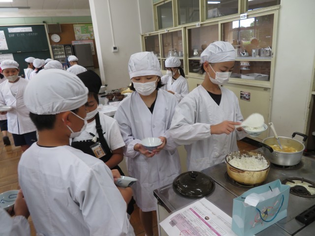5年生がご飯とみそ汁の調理実習をしました。