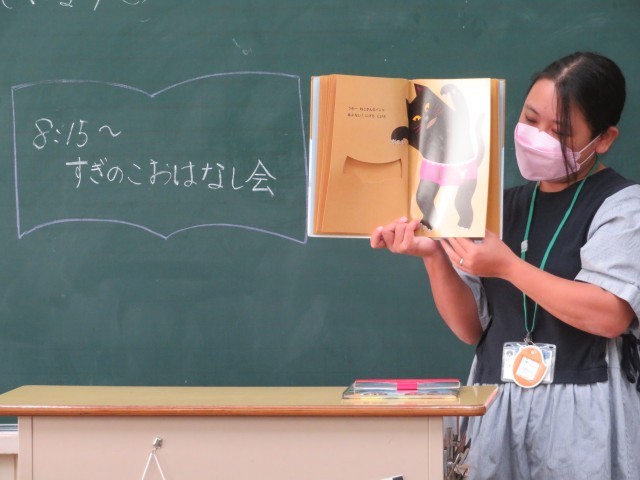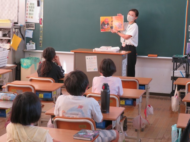 4年生の教室で、すぎのこおはなしの会の皆さんによる読み聞かせがありました。