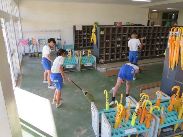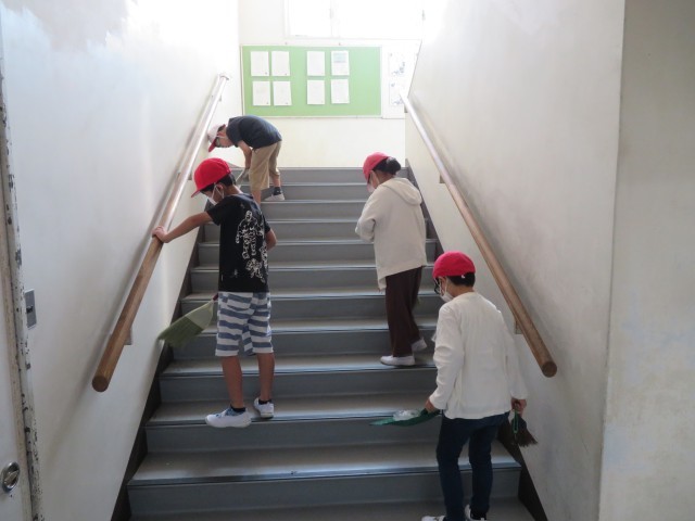 朝は、学校への感謝の気持ちを込めて、清掃からスタートしました。