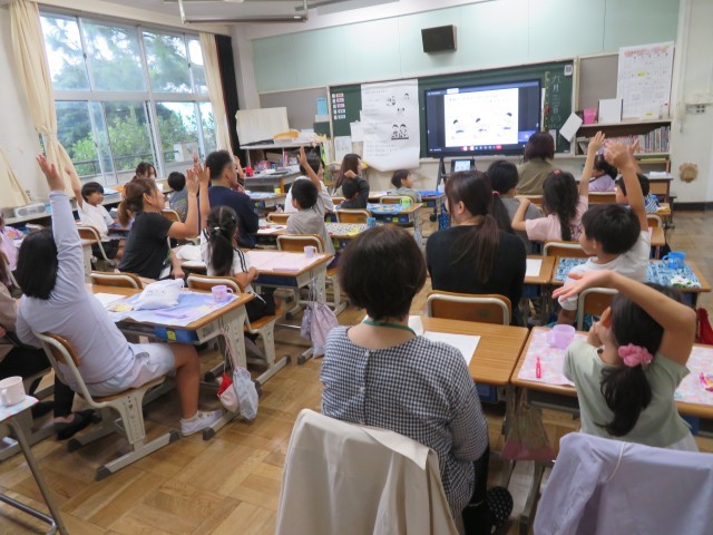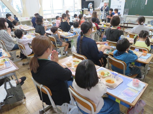 最後は、お家の方と一緒に給食を。牛乳のストローの差し方など、給食の流儀を児童が教える様子も見られ、微笑ましいひとときとなりました。