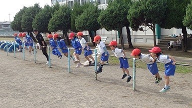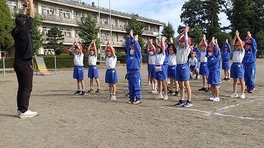 スポーツの秋……1年生は今日、ひたちなか市の団体、KAWASAKI KIDS基金による「小学校1年生・2年生を対象とするパーソナルな体づくり」授業を受けました。ひたちなかのno.8ジュニアアスリート教室より今井先生を講師に迎え、鉄棒を教えてもらいました。準備運動からいろいろな動きがあり、児童たちはとても楽しそうに体を動かしていました。