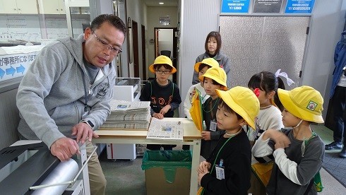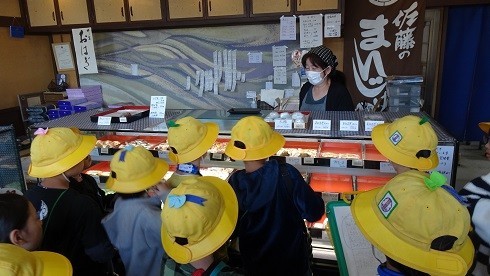 今日は、2年生が町たんけんに出かけました。3つのコースに分かれて、地域にある職場を訪問させていただき、仕事の様子や内容について学びました。道中の安全確保のため、ボランティアとして保護者の皆様にお手伝いをいただきました。また、どの職場でも、お忙しい中、仕事をされている方が手を止めて、見学や体験をさせてくださいました。ご協力ありがとうございました。