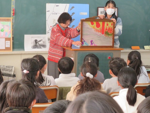 特に、紙芝居では、驚きの声を上げたり、息をひそめて見入ったりする場面もあり、戦争の恐ろしさを実感できたようでした。