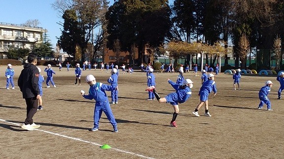 2年生が、no.8ジュニアアスリート教室の今井先生による「体づくり」授業を受けました。本日の内容は「投げる」ことでした。授業は、おなじみの準備運動から始まり、児童たちは、最初、軍手(あまり転がっていかない)で、投げる動作を教わっていました。