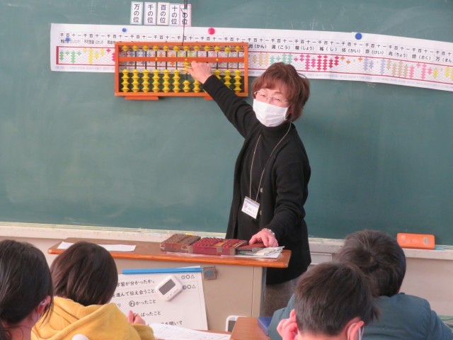 ひたちなか珠算連盟の方をゲストにお招きし、3年1組と2組で、そろばん教室が行われました。
