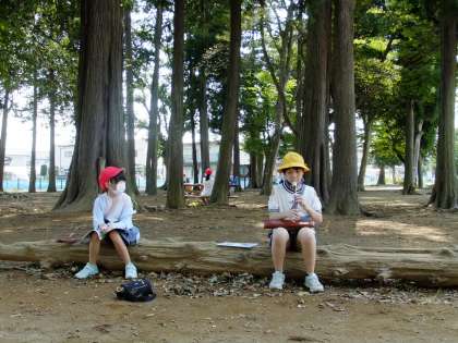 よい天気なので3年生は,すぎの子観察園で,間隔をあけてリコーダーの練習をしていました。外での演奏は気持ちよいです。そして,「かげおくり」にチャレンジです。