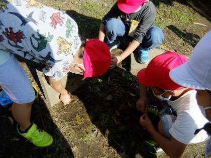 他にも木の根元に,水の流れ道を作ったり,遊びの相談をしたり,何もなくてもみんなで考えて遊びを考える天才です。