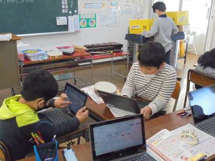 ジャムボードを使って表し方を考えて,実際の楽器でチャレンジです。何度もチャレンジできますので,作りかえて自分の表現をつくり出しましょう。