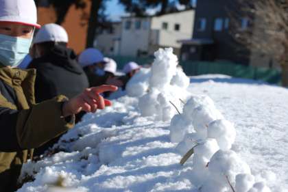 2年生が、かわいい雪だるまを作っていました。ちいさいお手々で一生懸命でした。