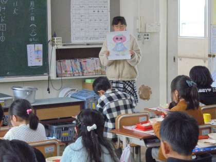 給食委員さんが各クラスを回り,「干し芋」についての話をしました。