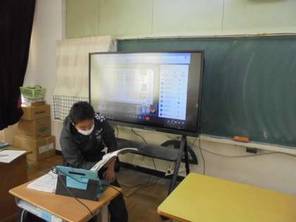 オンライン学習は,前回よりスムーズです。高学年では,デジタル教科書,黒板等を活用して,教室と同じように授業が進んでいます。子どもたちの答える声が,誰もいない教室に響き,不思議な感じです。