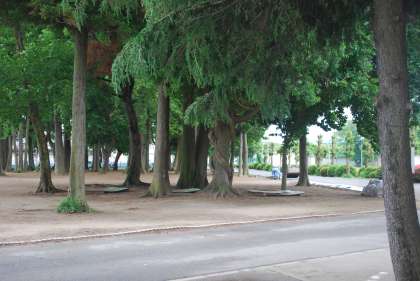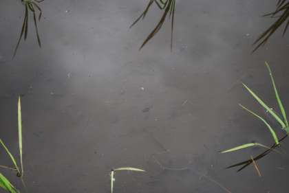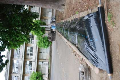 今日は、暑さも落ち着き寒いくらいです。小雨の中、校務員の丸島さんが、フラワーロードにマルチをかけていました。草が、生えないようにするためです。そのあと丸くくりぬきマリーゴールドを植えるそうです。田んぼには、おたまじゃくしも元気に泳いでいました。