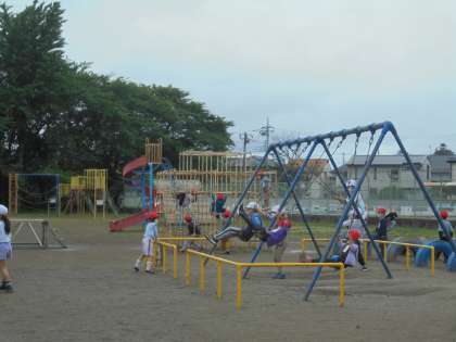今日は朝から雨模様でしたが、昼休みには雨も上がり、子どもたちは校庭に出て遊んでいました。高学年はクラスレクで、みんなで歓声を上げながら楽しそうにドッチボールをし、低学年はブランコで仲よく遊ぶ姿が見られました。曇天の下でも子どもたちは元気いっぱいです。