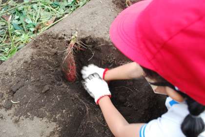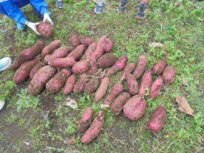 今日は、1、2年生が学校の畑で芋掘りをしました。大きくて丸いお芋や長細いお芋など色々な形のお芋が掘れました。あちらこちらで「大きいお芋だよ。」「これすごくおいしそう。」などど歓声があがっていました。子どもたちは自分たちが堀ったお芋を今日、お家に持ち帰ります。