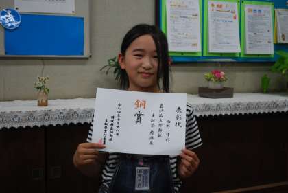 4年2組 西野日彩(ひいろ)さんは、嘉納冶五郎師範聖誕祭 絵画展において