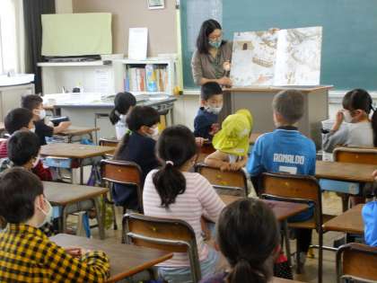 すぎのこおはなし会による3・4年生の読み聞かせがありました。「おやゆび姫」などなじみのお話にも聞き入っています。校内にツバメの巣がありツバメが飛んでいます。子供たちは気付いてお話を思い出すことでしょう。
