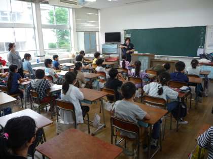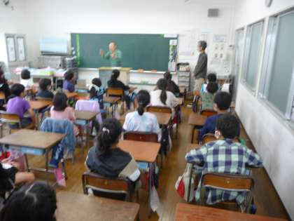 4年生が福祉体験で手話の学習をしました。講師の先生の話をしっかり聞いて学ぶことができました。