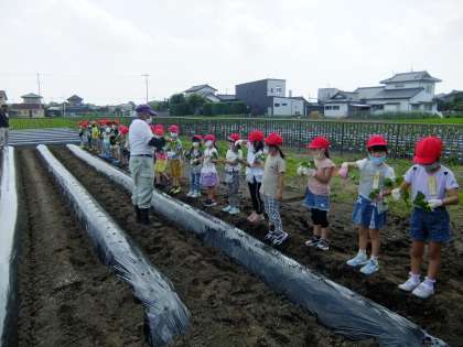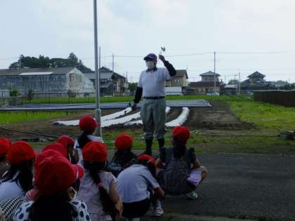 1・2年生がサツマイモの苗を植えました。地域の方に,サツマイモの苗についておはなしを聞き,教えていただきながら丁寧に植えることができました。大きくなるのが楽しみです。