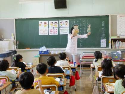 2年生の給食指導は,3つの栄養とバランスについてでした。今日の給食には,たくさんの野菜が入っていましたが,野菜が食べられなかった子は,「お家で食べられる野菜を見つけて挑戦してください。」と栄養教諭の先生からお話がありました。