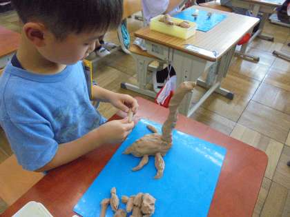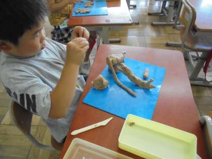 今日は,粘土で久々に自由につくってみました。ものすごく集中しています。