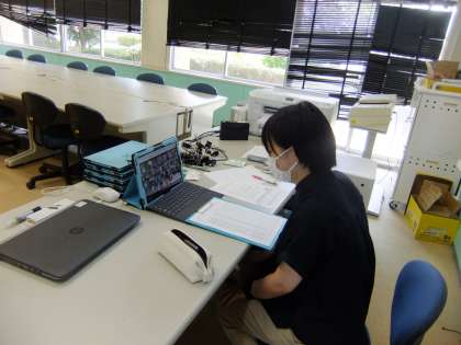 今日は,4クラスがオンラインホームルームの予定です。早速つながり,夏休みの様子などを担任とお話ししたり,ペットを画面で紹介したり楽しく会話をしていました。夏休みを元気に過ごしていることが顔を見て伝わり,担任もほっとします。