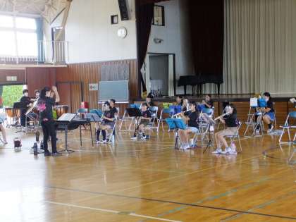 吹奏楽部は,10日の県大会に向けて,体育館でビデオの収録です。1度ホール練習の時に撮影したのですが,それからの練習で上達したため,もう1度挑戦したいという部員の要望により,2度目の撮影です。感染対策をして,短時間で練習に励んでいます。