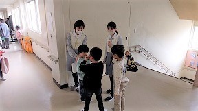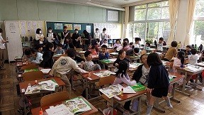 5月9日、幼児教育施設による授業参観を実施しました。市内の幼稚園・保育園等から14名の先生方が参加し、1年生が「校内たんけん」について話し合っているところを参観してもらいました。先生方は、1年生がしっかり座って授業に参加していたり、進んで話合いを行っている姿に、感激されていました。参観の後には、なつかしい先生たちと触れ合う姿も見られました。