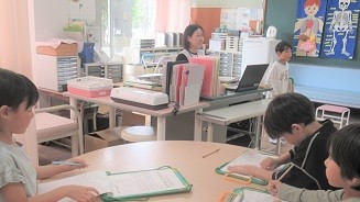 本日は2校時に1年生が学校探検を行いました。グループの友達と一緒に、自分たちで決めた校舎内の場所を巡って、そこにいる先生や保健の先生、給食の先生などにインタビューしました。聞き取った内容は、探検バッグを用い、一生懸命メモしました。