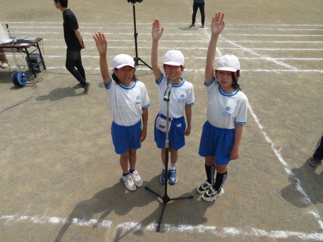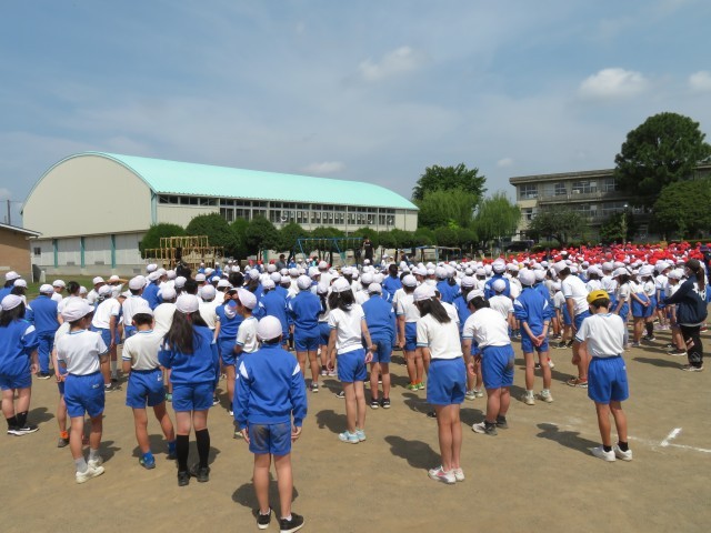 各学年ではすでに競技の練習をしていましたが、今日は全校で開会式と閉会式の練習をしました。