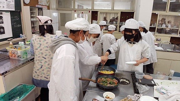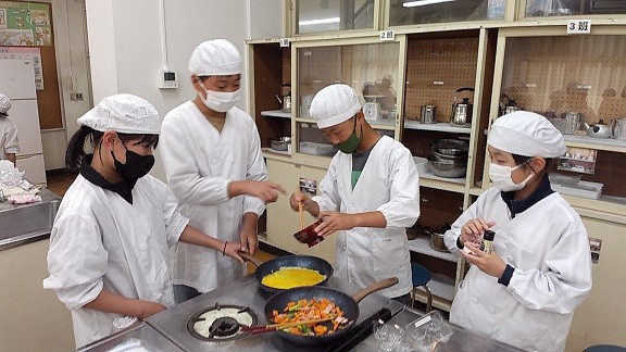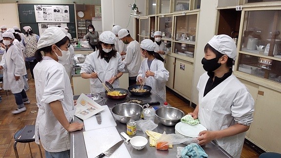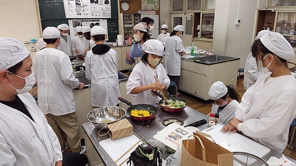 6年生が調理実習を行っていました。どの班も協力しながら、上手に野菜炒めとスクランブルエッグを作っていました。校長先生と教頭が、おすそ分けをいただきました。塩味が効いていて、とてもおいしかったです。