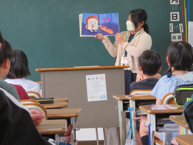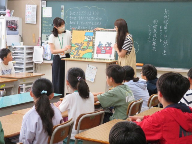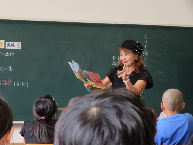 すぎのこおはなし会の皆さんによる読み聞かせ、今日は4年生の教室で行われました。