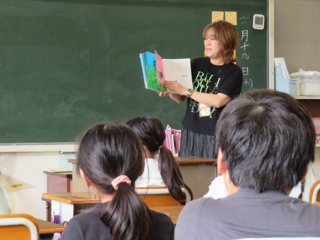 読み聞かせが終わると、感想を言いたくてたまらなかった多くの児童の手が勢いよく挙がっていました。