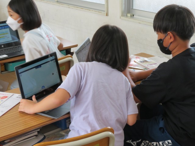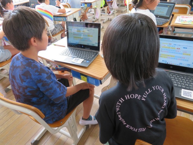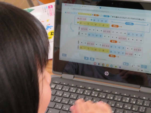 4年生の教室では、タブレットに「たこやき」「ふじさん」「おまつり」「おんがく」などの言葉が映し出されていました。