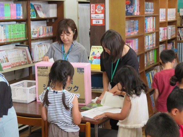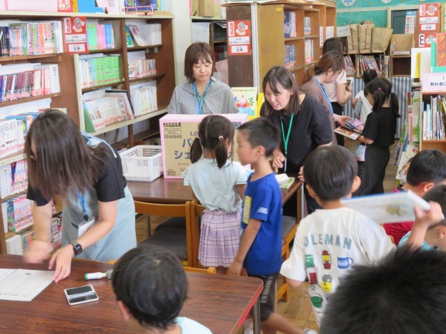 中休みに、図書室では1・3・5年生向けのイベントが開かれていました。