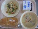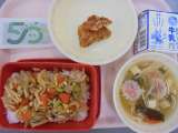 今週は,給食週間です。今日は「青菜チャーハン,シュウマイ,中華サラダ,牛乳」です...