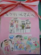 いつも美味しい給食を作ってくださる調理員さんへ,各学級から感謝のお手紙が届きまし...