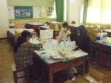 6年生が親子で卒業式のコサージュを作成しました。 動画をみながら組み立てています...