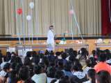 「小さな発見 大きなおどろき 科学がいっぱい 高野小まつり」のスローガンの下、高...