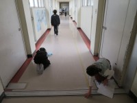 真剣な表情で「…6,7,8……」と数えながら歩いています。メジャーで何かを計測し...