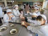 学校で作った米を家庭科室で炊きました。美味しそうなおにぎりができました。 自分た...