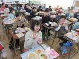 1年生は,和風折紙でお正月に向けておはし入れを折っていました。「お家に持って帰っ...