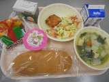 今日の給食はクリスマス献立です。 子どもたちは、ロールケーキ、イチゴプリン、ガト...