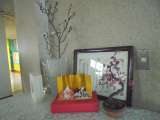 もうすぐ3月。職員玄関には児童が作った雛飾りと白い梅の花、ピンクの桃の花が飾っ...