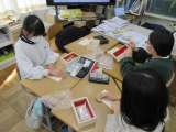 6年生が図工の時間にオルゴールの箱を好きなデザインに彫っています。 宝物になりま...
