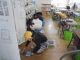 1年間お世話になった教室をきれいに掃除をしています。タブレットケースの中まで,き...