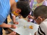 理科の実験で、種子の子葉には養分があるのかを調べました。子葉を半分に切って、ヨウ...