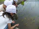 休み時間には,子供たちは,田んぼのオタマジャクシに気が付いて集まっていました。...