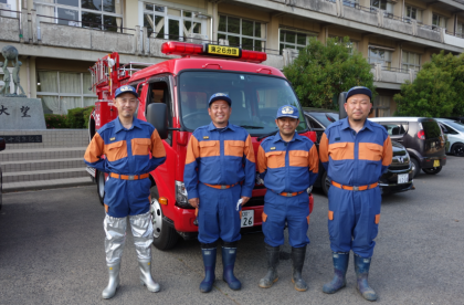運動会に向けて、ひたちなか市消防団第26分団の方々が校庭に水をまいてくれました。...