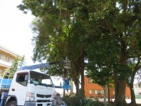 すぎの子観察園に古くなって幹が折れてしまった木があり、3日間にわたる伐採作業が行...