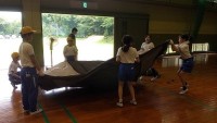 おやじの会キャンプ2日目、水鉄砲合戦の様子です おやじの会の皆さん、手抜きなし...